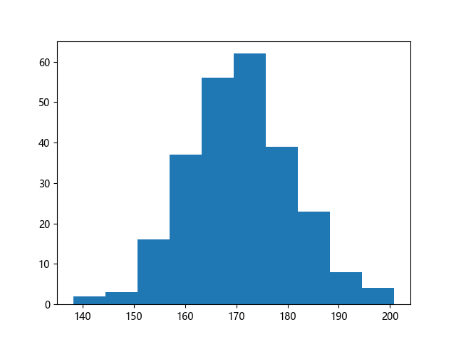 # 以下三行代码使编译器支持绘图功能: import sys import matplotlib matplotlib.use('Agg') import matplotlib.pyplot as plt import numpy as np # 生成正态分布数据: x = np.random.normal(170, 10, 250) # 均值 170,标准差 10,250 个数据点 # 绘制直方图: plt.hist(x) # 创建直方图 plt.show() # 显示图表 # 以下两行代码使编译器能够输出图形: plt.savefig(sys.stdout.buffer) sys.stdout.flush()