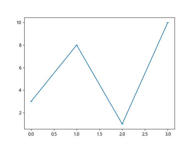 # 这三行代码使编译器能够绘图: import sys import matplotlib matplotlib.use('Agg') import matplotlib.pyplot as plt import numpy as np ypoints = np.array([3, 8, 1, 10]) # 使用下划线标记绘制 plt.plot(ypoints, marker = '_') plt.show() # 这两行代码使编译器能够输出图形: plt.savefig(sys.stdout.buffer) sys.stdout.flush()
